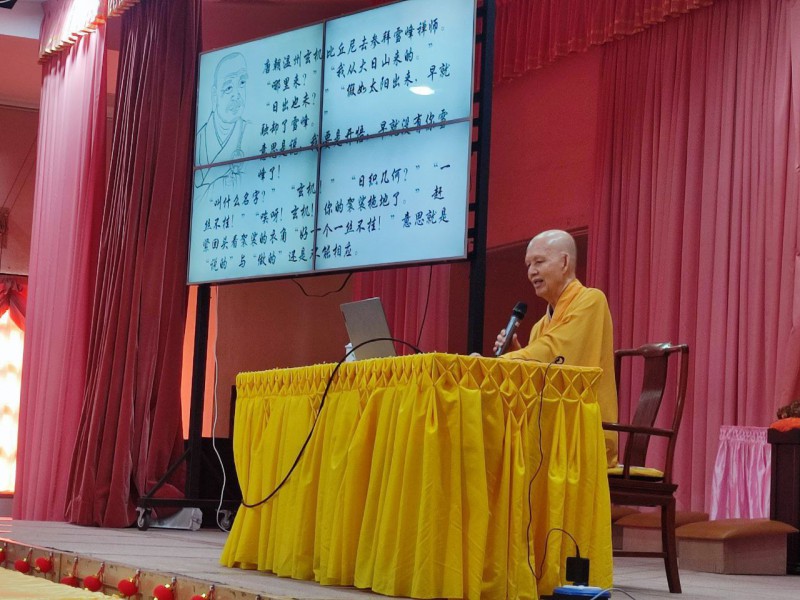 今年唯悟法师的新春佛法开示非常有趣。师父说原来许多我们平日耳熟能详的成语,都是出自佛教典故!师父非常风趣介绍了几个成语及讲述其由来: (1)放下屠刀 ,立地成佛 (2)一絲不挂 (3)借花献佛 (4)本来面目 (5)火中生莲 (6)功德无量 。