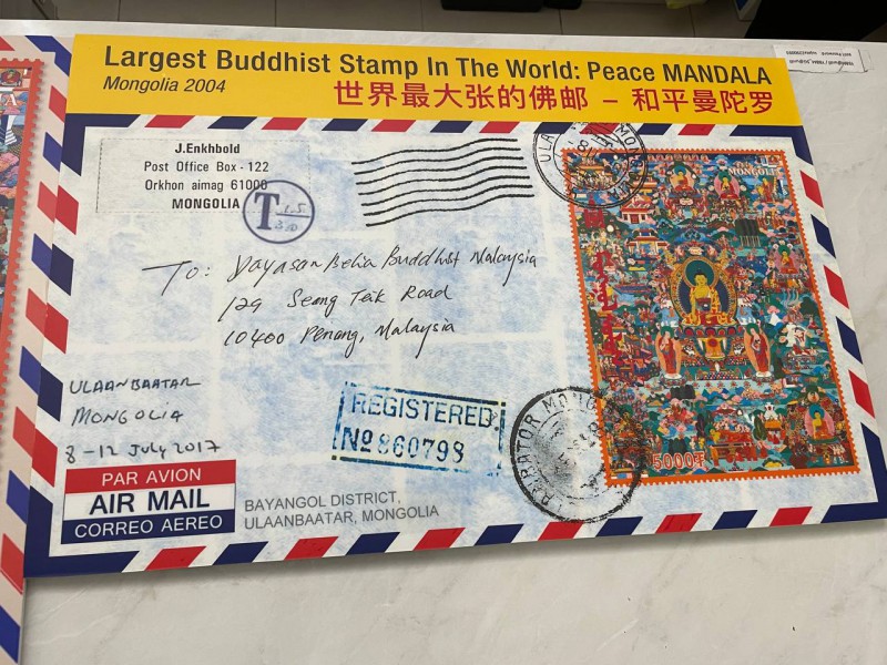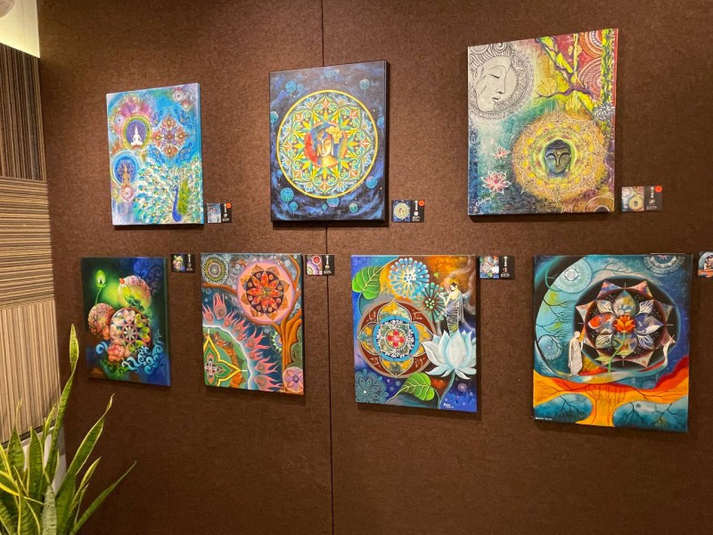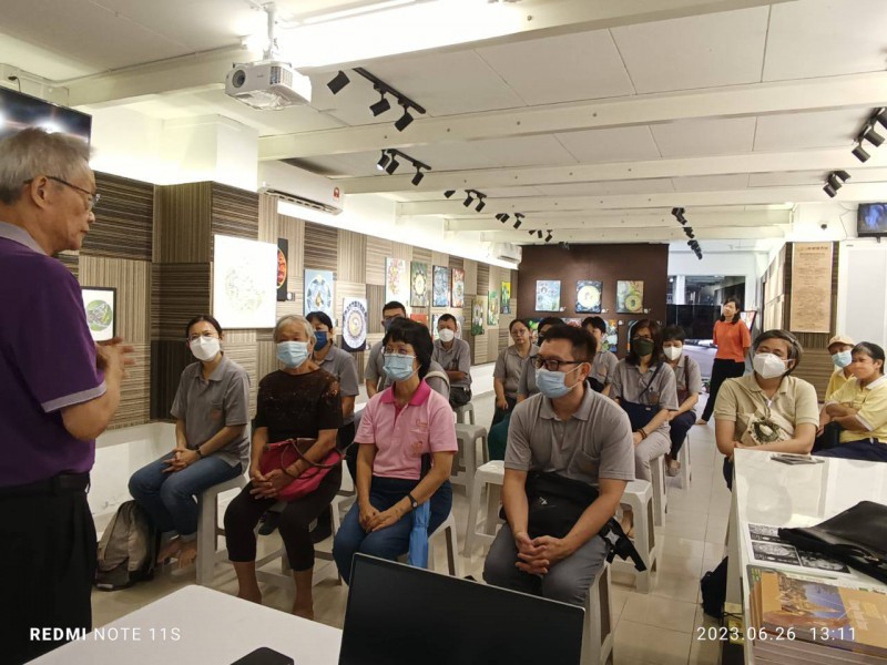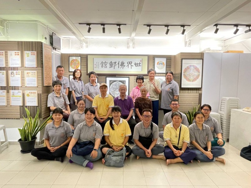 饱足之后大家到「世界佛邮馆」补充精神粮食。秉持着传承佛教文化的使命与精神,「世界佛邮馆」创建于2019年,佛邮捐献人梁国兴居士自大学时期即积极投身于佛教事业,至今已逾半个世纪,其更无私地捐献珍藏多年的佛教邮票,并将心得编辑成书《浩瀚邮海游圣境》,让社会大众透过佛邮认识佛教。适逢该馆正在展览曼陀罗画,大家在欣赏之余,也从馆方处了解自疫情之后,佛邮馆也开放予艺术爱好者开办绘画班及展出作品,透过结合佛教与艺术来接引更多人学佛。