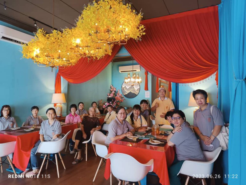 上午10.30am大家先到大悲殿礼佛以及念诵发愿文,之后共车出发到素膳享用美味的午餐。