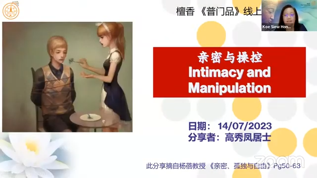 2023年7月14日(星期五)高秀凤居士分享「亲密与操控」
