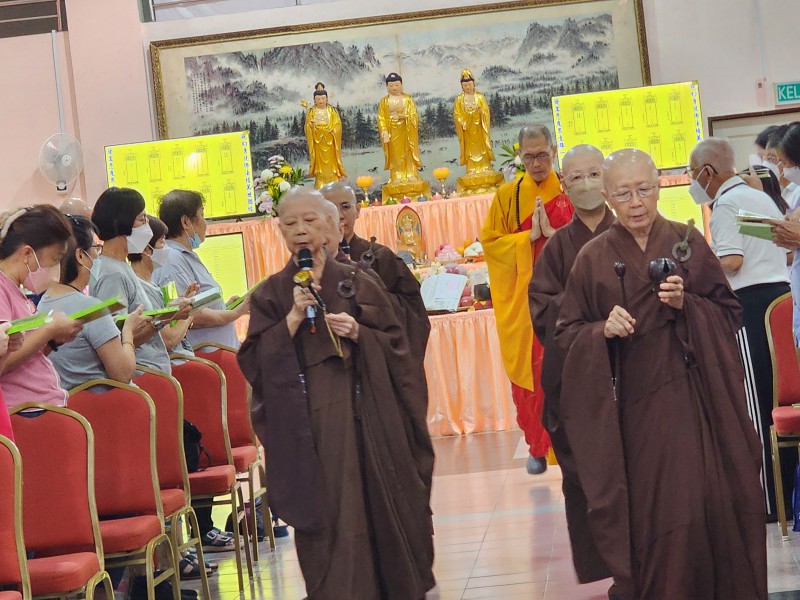 法会第一天(9月4日)晚上7:30pm于五楼礼堂举行洒净仪式之后大众一起共修恭诵《佛说阿弥陀经》以及聆听佛法开示。