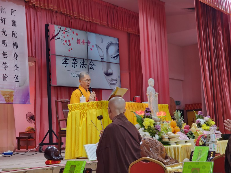 檀香寺于2023年9月4日(农历七月廿日)开始于五楼礼堂启建孝親法會。法会设有「延生坛」以及「净土坛」供善信们为健在的父母亲属点灯祈福以及在法会中超荐各姓考妣宗亲、历代祖先、六亲眷属及冤亲债主等过往先灵。参加法会的善信们以随喜性质乐捐功德金,法会收入全数捐助檀香教育基金。