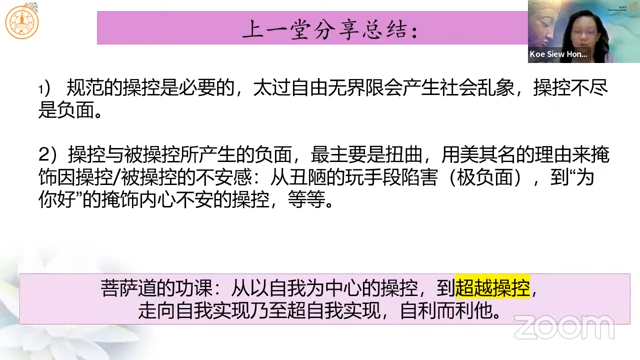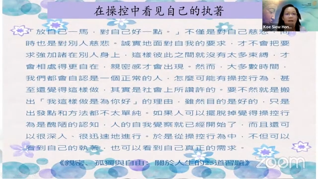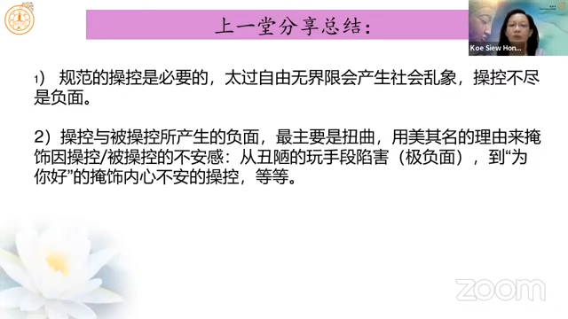槟城檀香爱心福利中心主席高秀凤居士分享「超越操控 开启亲密」