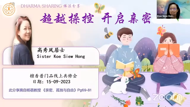 2023年9月15日(星期五)高秀凤居士分享「超越操控 开启亲密」