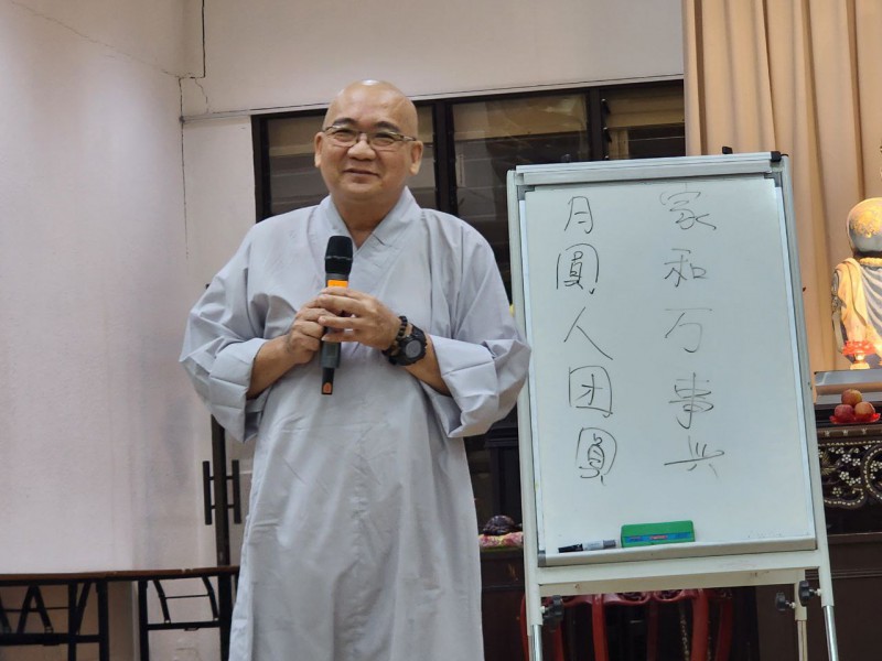 首先,司仪便开始了开场白。接着,大众便随着梵呗组的带领下念佛共修。之后,真升师父为大家进行佛法开示,也正式拉开了这场中秋晚会的序幕。过后,就是娱兴节目的环节了。在一声声美妙的歌声与琴声中,最后一组表演的同学是檀香周日佛学班的小菩萨们,在一句句稚嫩的歌声中,结束了娱兴节目。
