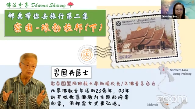 2023年10月13日(星期五)梁国兴居士分享「邮票带你去旅行(第二集:寮国-琅勃拉邦(下)」。