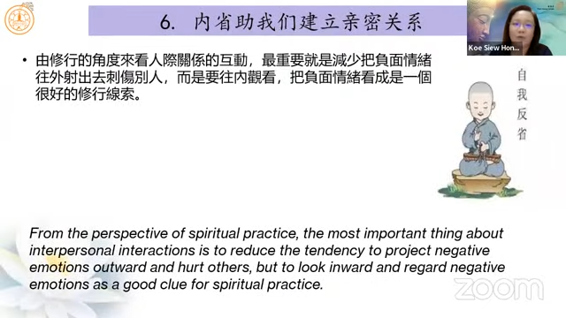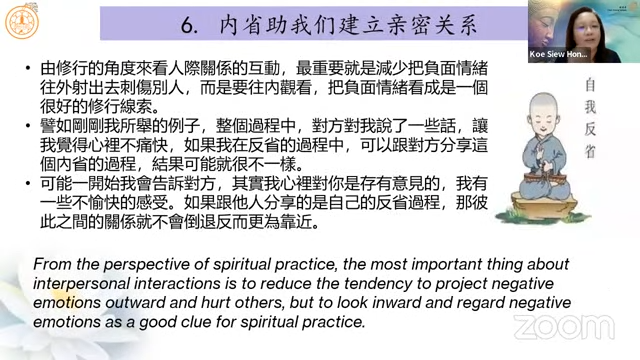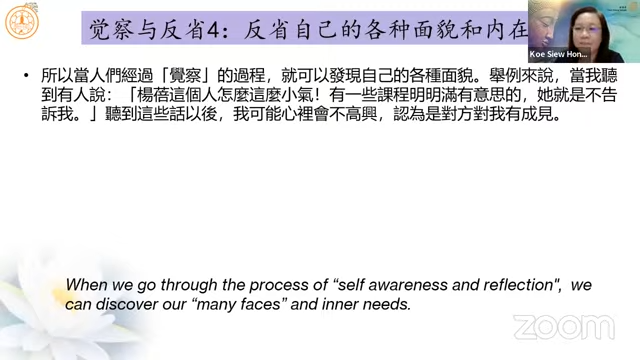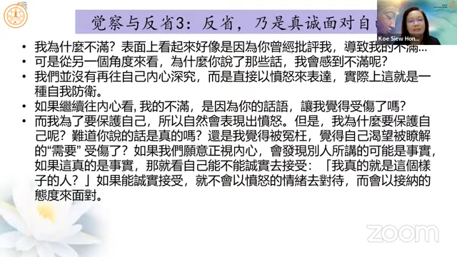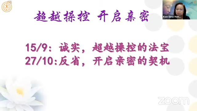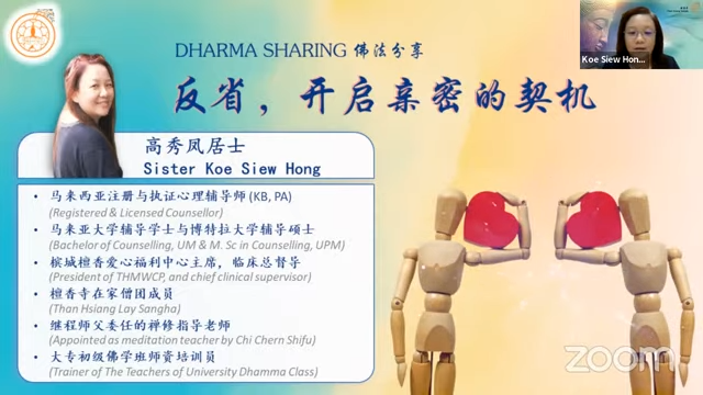 槟城檀香爱心福利中心主席高秀凤居士分享「反省,开启亲密的契机」