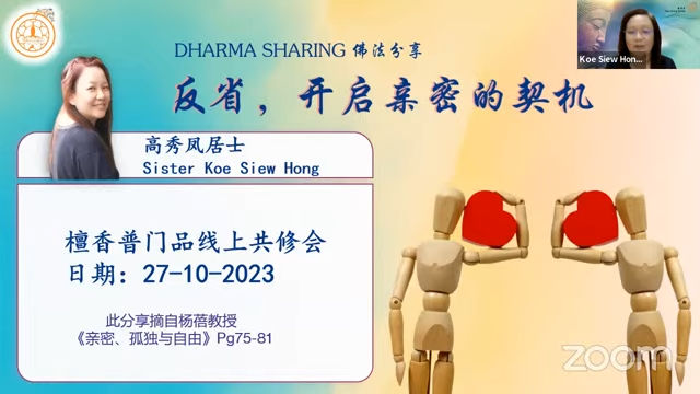 2023年10月27日(星期五)高秀凤居士分享「反省,开启亲密的契机」