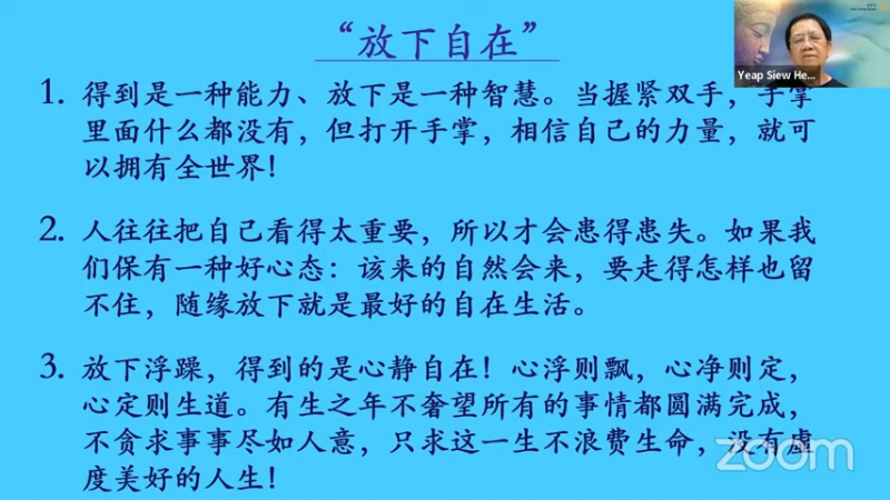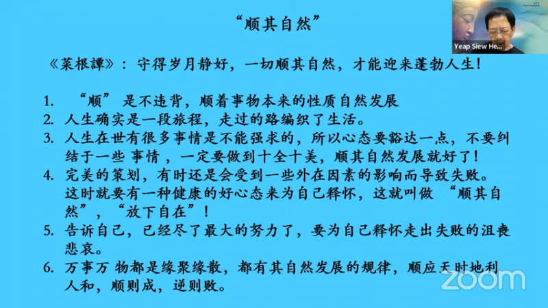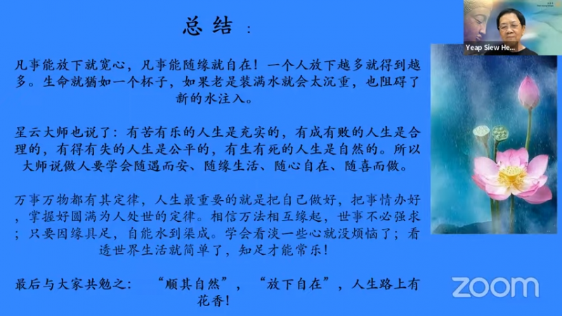 2023年11月17日(星期五)叶秀欣居士分享「顺其自然,放下自在」