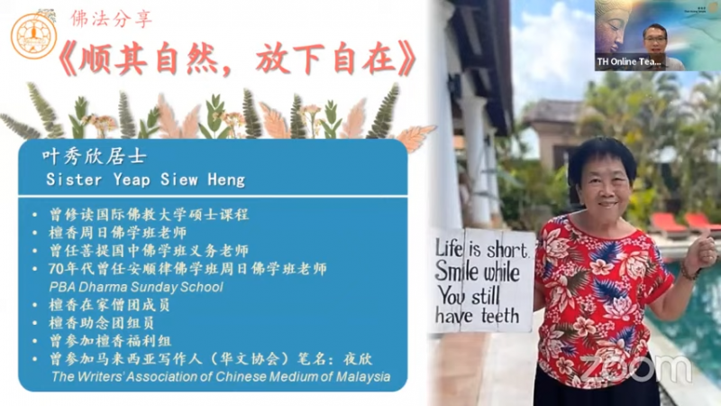 檀香在家僧团成员叶秀欣居士分享「顺其自然,放下自在」