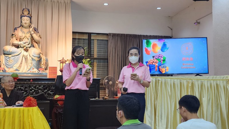 开示完毕,味芳和施潓两位司仪开始为庆生会掀开序幕。在司仪带领下,大众合唱了《含泪的感恩》。“可曾知道,当两个生命挣扎着生存,是痛苦与欢乐的交织......” 歌词里深切的字字句句,不禁让大众心中泛起涟漪,眼角有泪光。接下来的温馨环节,少不了有接领法师祝福与纪念品、许愿及切蛋糕仪式。“写感恩卡”活动中的爱语分享,更是增添了此聚会的温暖氛围。