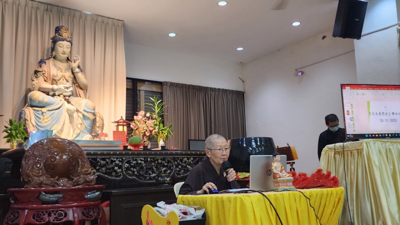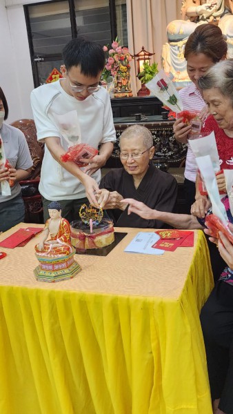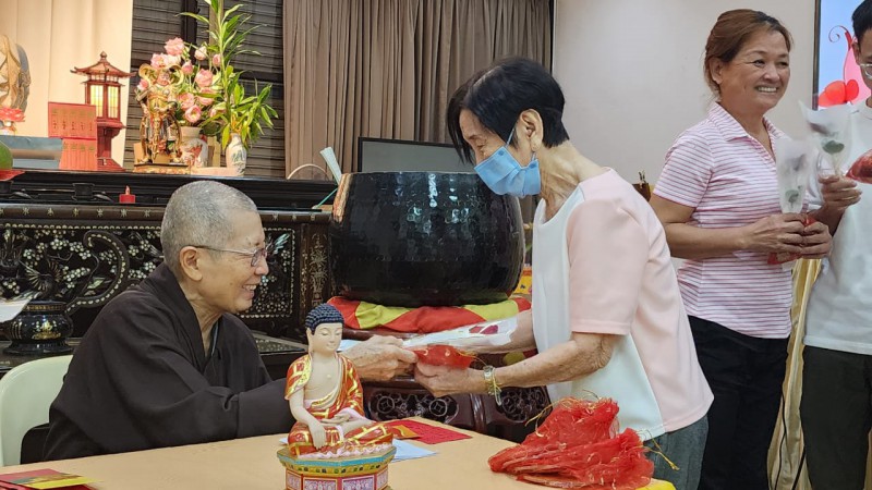 今晚,槟城檀香寺大悲殿传来轻轻的谈笑声,那是许久未有的景象。原来是佛友们正为共修会庆生会忙前忙后。因疫情缘故,此庆生会已停办三年,在真信法师的带领下,每三月一次的庆生聚会再有因缘续办。