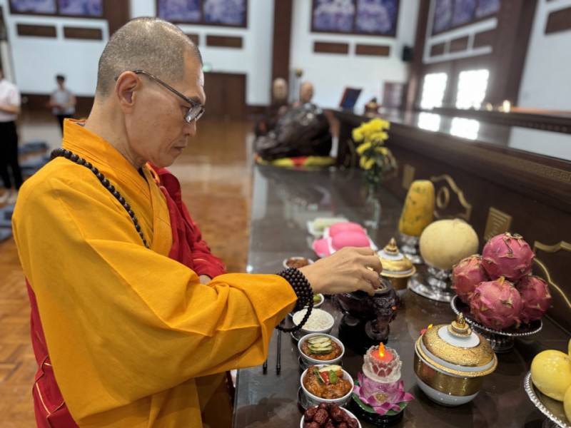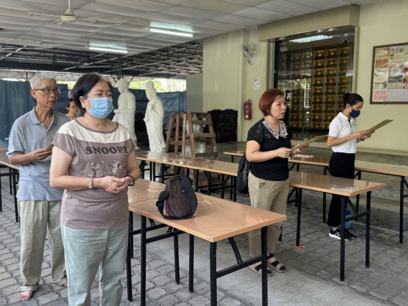 今天(农历二月初八)是佛出家日。檀香寺在这一天上午10时45分在六楼的大雄殿进行例常佛前大供。大家以欢喜心来一起参与佛前大供。接着法师们带领大家到底楼的三圣殿进行回向。仪式到此圆满结束。