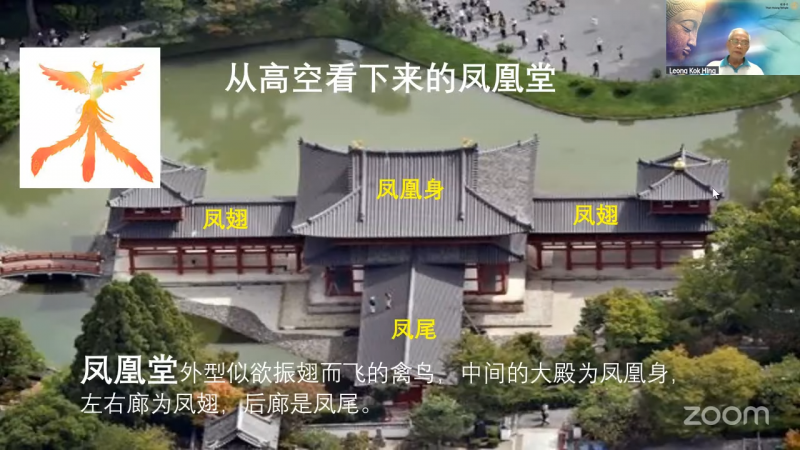 因为从高空看下来的「凤凰堂」,外型似欲振翅而飞的禽鸟,中间的大殿为凤凰身,左右廊为凤翅,后廊是凤尾。