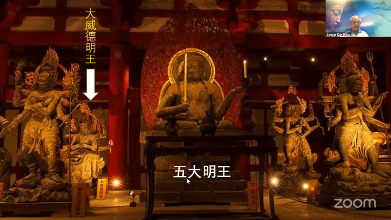 五大明王:其中的「大威德明王」是文殊菩萨的忿怒相,以水牛为坐骑,造像有六面、六臂、六足。