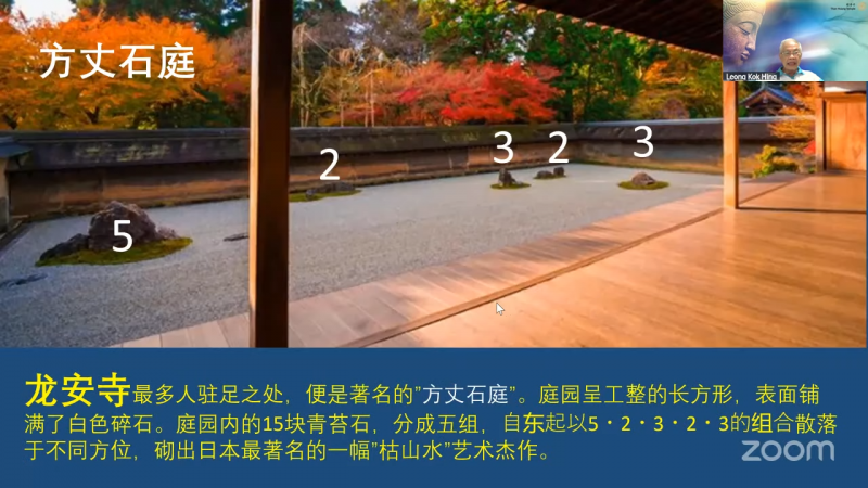 一个有趣之处就是不论谁在观赏,你只能看到 14 块石头。传说,只有觉悟之后,才能一次看到 15 块石头。