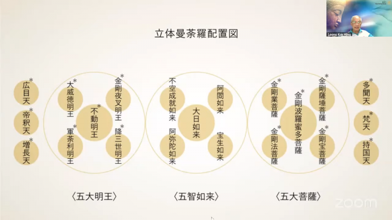 讲堂内部摆设是立体的曼荼罗,也就是由〈五大明王〉﹑〈五智如来〉(五方佛) ﹑〈五大菩薩〉﹑ 梵天﹑帝释天,所组成的一个曼荼罗。
