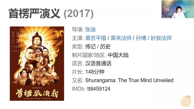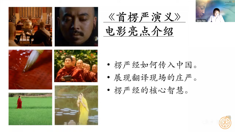 陈湘妮居士也借此机会向大家介绍一部以《楞严经》为基础精神拍摄的佛教电影——《首楞严演义》。