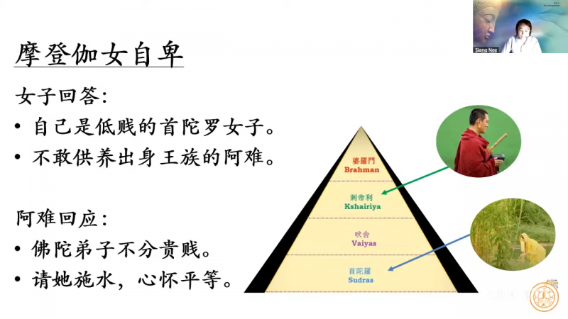 然而,阿难尊者告诉摩登伽女:「佛陀弟子在修行中,不分贵贱尊卑!」