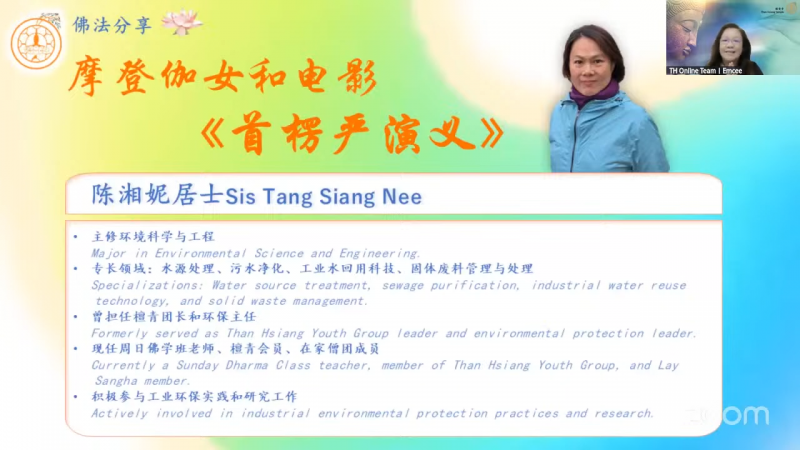 檀香在家僧团成员陈湘妮居士分享「摩登伽女和电影《首楞严演义》」