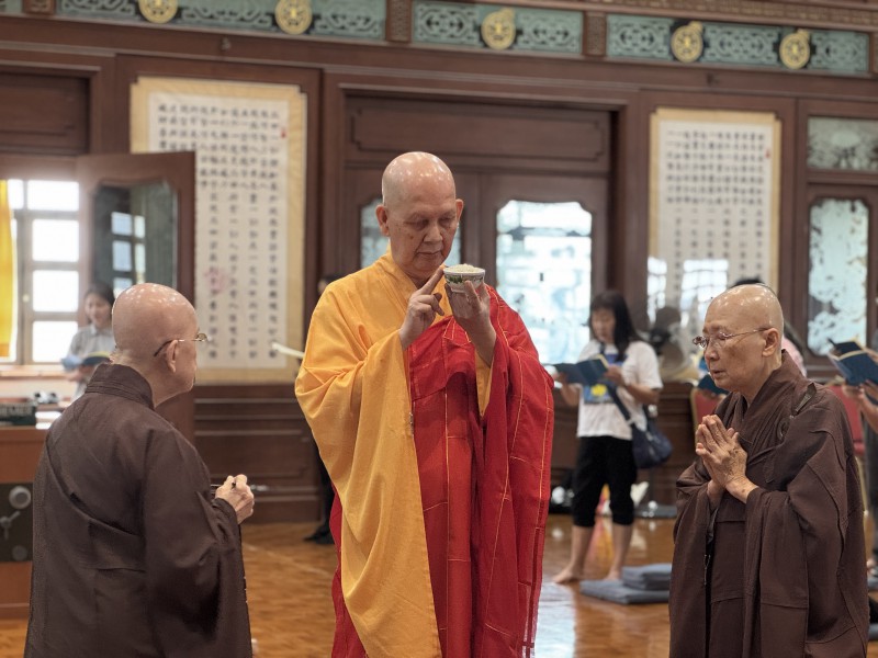 法师进一步介绍南传佛教的雨季安居制度与中国佛教的“结夏安居”传统,并说明今年因闰六月,檀香寺法师于四月十六日开始安居,三个月圆满后,已于闰六月十五解夏,仍依传统于七月十五日举行盂兰盆法会。法师也提到,七月十五是出家人三个月安居后的“自恣日”。彼此忏悔、互相提醒修行中的过失,以清净身口意三业。