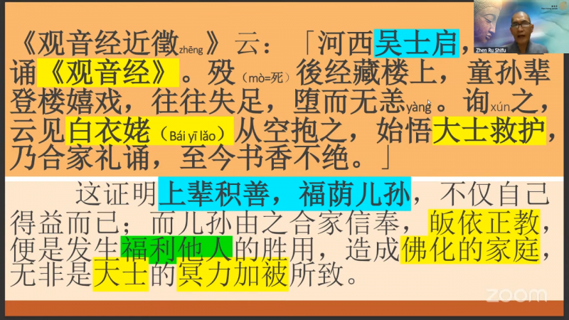 最后,真如法师勉励大家要深信不疑,「念念勿生疑,观世音净圣,于苦恼死厄,能为作依怙」!