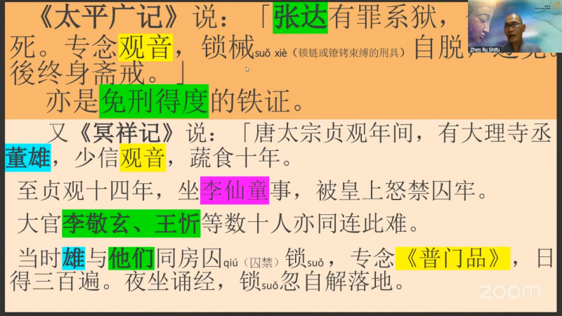 「张达有罪系狱,分当受死。专念观音,锁械自脱,遂免。后终身斋戒。」 亦是免刑得度的铁证。