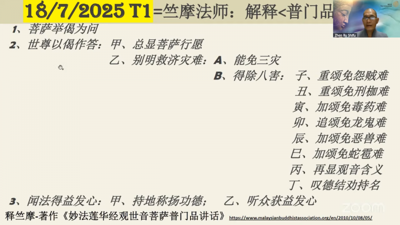 2025年9月19日(星期五)真如法师慈悲开示「解释 ⟨普门品⟩ 偈颂(2)」