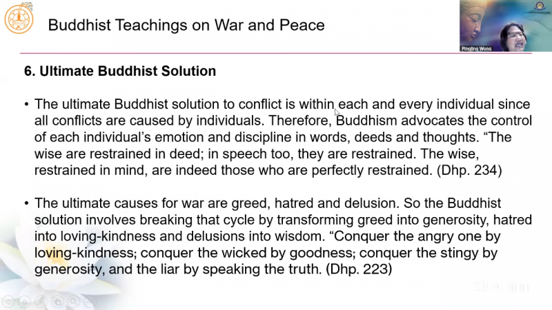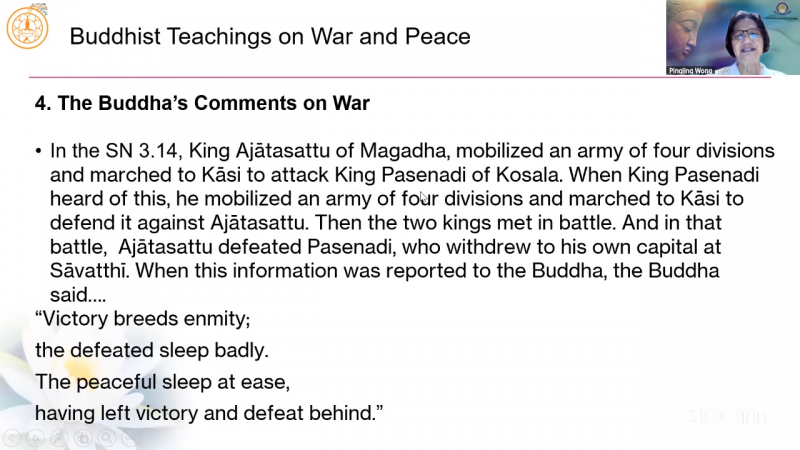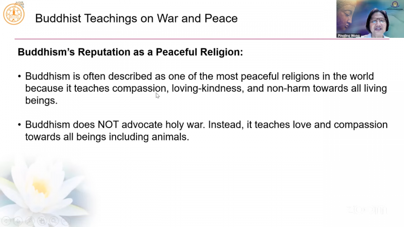 国际佛教大学教学助理黄品琳居士分享「佛教关于战争与和平的教义」