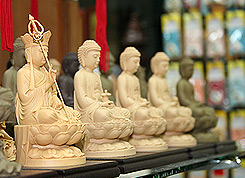 檀香寺于底楼设立佛教流通处,以方便善信奉请佛教文物,物品包括:佛珠、佛牌、佛像、佛教经忏光碟、法器、海青、佛桌供灯、供杯、香炉、佛教杂志、吊饰、供具等,皆会令您爱不释手。有心奉请供养佛教文物者,请于每天早上 8 点至下午 5 点到来参观选购。