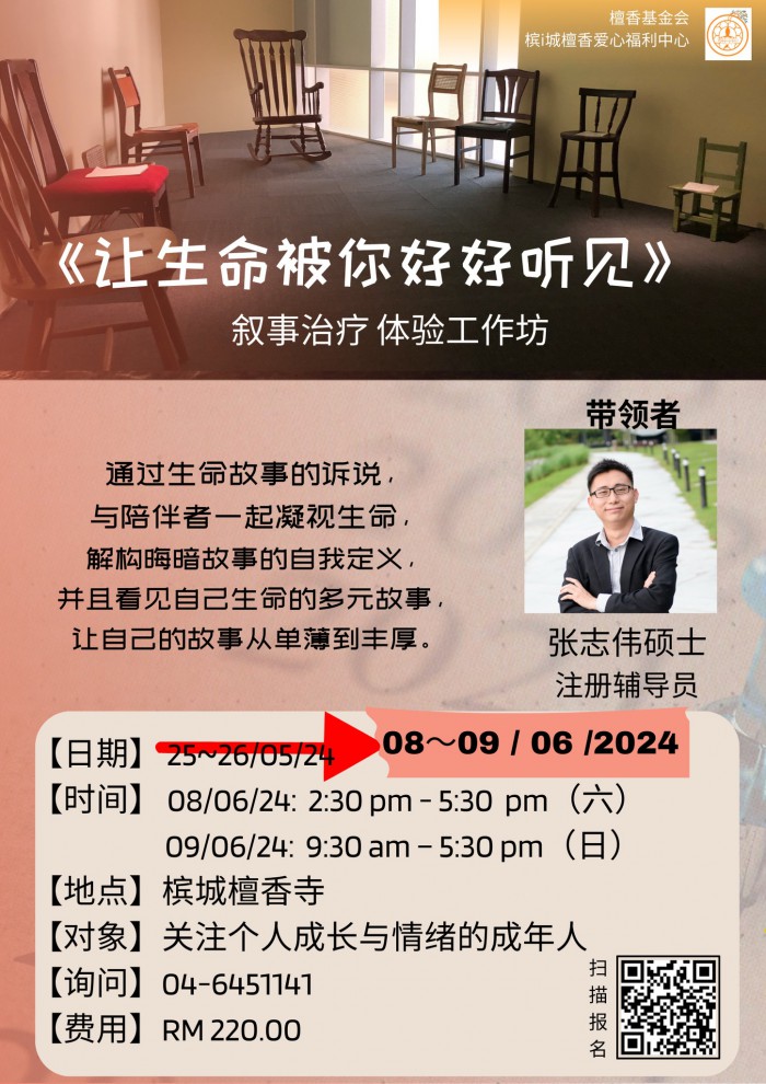 《让生命被你好好听见》工作坊当一个人叙说自己的故事,不论是困境或顺境,如果隐含其中的生命旋律能被听见,被好好的理解与回应,人们常能在这样的过程中也看见自己。——摘自 黄锦敦《最想说的话,被自己听见》