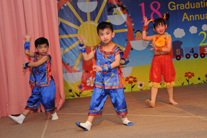 十二支舞蹈各有千秋,舞风不同,一些动感十足、一些活泼可爱、一些轻松快乐;让大家不自禁投入在愉悦的气氛当中。其中一些家长们更随着音乐的节奏拍掌符合、一些则跟着台上的小朋友们的舞步轻轻摆动身体。小朋友们虽然在短时间内学习舞步,但是所呈现出来的效果令大家赞叹不已;各位来宾及家长们都以热烈的掌声回应。