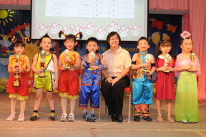 紧接下来,即由檀香幼儿园的学生们为各位来宾呈现一连串精彩的余兴节目。当天共有十二支舞蹈,包括:这十二支舞蹈包括:后街的庙堂、Happy Cupid、朵朵莲花翩翩舞、Do Re Mi、稻草里的火鸡、小乒乓、Happy Days、Jong Jong Inai、快乐舞步Da Da Da、张灯结彩庆佳节、Indian Dance、小小厨师。