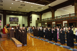 檀香寺于2009年12月31日举办念佛倒数迎新年活动,吸引近两百名佛友前来檀香寺六楼大雄殿一起参与这项意义非凡的活动。