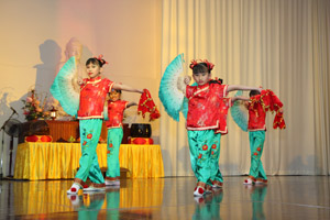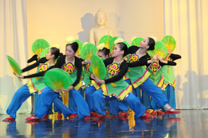 节目紧接下来由多个佛教团体呈现贺岁节目,当中包括让人赞叹的精彩舞蹈、古筝独奏、独唱、法音合唱团也为大家带来多首动听的新年歌曲。大众们更借此大团拜的机会与各位法师拜年,现场气氛显得喜气洋洋,法喜充满。