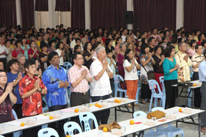 农历初七也称为人日,在这欢腾的日子里菩提国民型中学礼堂聚集了千名佛教信徒一起参与大团拜活动。
