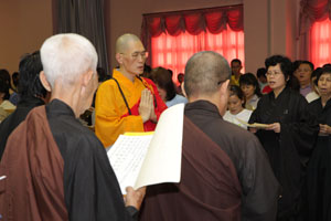 法会进行后即告结束,大众感觉法喜充满,并将佛事之殊胜功德,回向法界一切众生,离苦得乐、往生净土、早日成佛。