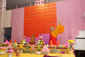 檀香寺于8月16日至8月21日(农历七月初七至七月十二)举行了一连六天的共修活动,诵念《佛说阿弥陀经》和持念弥陀圣号为主。每晚礼请常住法师们为信众开示,许多佛友们都把握共修机缘,抽空前来参与。【孝亲法会】又于8月22日(农历七月十三),上午九时三十分假五楼多元化礼堂启建。