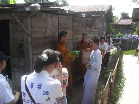 十一月十二日,檀香寺与玻璃市佛教会合办《玻璃市赈灾活动发放救济品》。