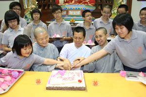 当然今天也在殊胜的因缘下,为9月份至12月份出生的小菩萨们庆生,也希望他们在年年庆生当儿不要忘了这一天是“父忧母难日”,不要忘了父母亲的养育之恩!他们要知恩、感恩、报恩,好好的孝顺父母亲,做一个实践十善法的三宝弟子!