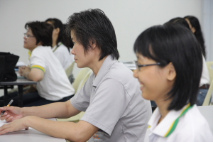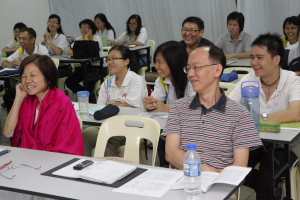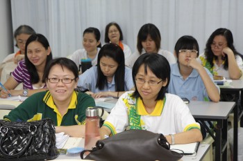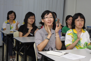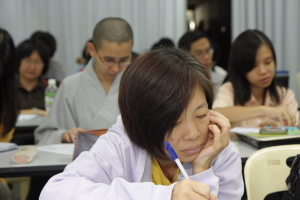 在这次的师资培训营,我们也安排了一些义工老师们进行教学示范。这主要是让大家对我们的课程有较深一层的了解,亦希望初加入我们行列的义工老师们能够掌握一些教学技巧。主讲者都很认真地示范,让大家明白佛学班并非沉闷的教学,而是可以用既活泼又生动的方式来进行的。
