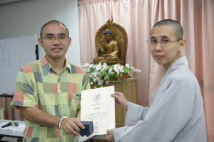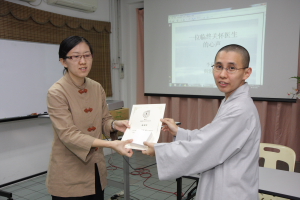 配合菩提佛学班,真醍法师也以唯悟师父的开示《推广佛教教育的重要性》来勉励大家。法师也希望不论全职或义务老师们都能够理解以往大德们的奉献精神,一起把菩提学校尤其是佛学班办好。我们也借此机会让大家了解佛教教育在社会上扮演着很重要的角色。