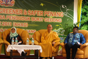 法师说:“正是因为这个原因,较早时我们便萌起通过清理居銮河( Sungai Keluang) 的运动来促进檀香寺信众、武吉哥隆(Bukit Gedung) 及惹兰登雅南区( Jalan Tengah (Selatan) 当地居民之间的关系。没想到当初这样一个单纯的构想,竟然荣幸的获得槟州市政局的鼎力支持,及愿意成为此项运动的主要主办当局之一;深信当地居民必将由此而受益良多。除此之外,也希望籍着这项运动,提高本地居民们保持和维护河流与大自然的清洁及美观之醒觉;进而使到环保意识在我们日常生活中扮演一个更重要的角色。”