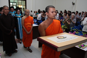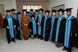 由槟城檀香寺住持唯悟法师推动和建立于泰国的国际佛教大学,8月31日在泰南康月镇的总校大礼堂内举行第四届毕业典礼。当天共有大约五百人出席该项盛会,分享毕业学子的喜悦,也同时见证了充满意义的“千树一心护佛大”植树仪式。出席者除了大学董事会成员、教职员、应届毕业生与在籍学生外,也包括来自马来西亚的佛友及不少泰国当地居民与毕业生的家人和亲友等。本届共有二十八名佛学硕士、五名佛学学士、五名高级佛学文凭结业生,及九名其它文凭结业生。