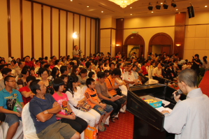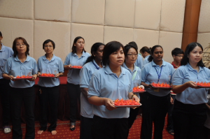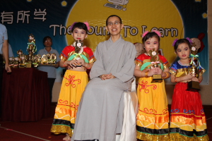 余兴节目表演过后,有一个意义深长的传灯仪式。师父、园长和老师们受邀上台与毕业生一起启亮电子灯。在《传灯》这首歌曲响起时,场内一盏一盏的电子灯在熄了电灯的昏暗大厅里点亮了起来,一盏一盏的延绵下去,像是流传了几千年的佛光一样照亮着大家。所有出席的来宾们也高举着小小的电子灯,一同高唱《传灯》。祈愿盏盏心灯,照亮自己也照亮他人!