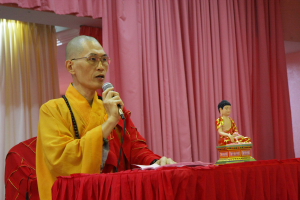 檀香寺监院真如法师在给新人的开示中指出,要维持一个幸福、祥和的佛化家庭,夫妻之间必须具备三个重要因素:‘互爱’、‘互助’和‘同修’。