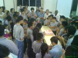 最后,小菩萨们最期待的庆生会时段终于到来了!这一次是为九月份至十二月份过生日的晚晴苑老菩萨及爱心家族成员庆生。大家带着感恩喜悦的心唱颂《含泪的感恩》,从中深深地体会到生日之所以称为母难日的原因,更升起了一股对母亲的敬佩与感恩。唱过了佛化生日歌,寿星们许愿后,便是切蛋糕仪式。过后,寿星门便逐一从师父手中接过生日礼物,然后欢欢喜喜地向妈妈献花。