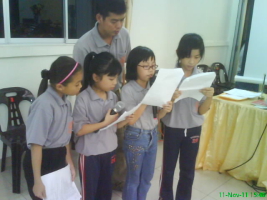 接下来的环节是结业礼,首先是佛学班代表供养真信法师,接着是赠送恩物予爱心老师及爱心爸妈。过后,由真信法师颁发策励奖给小菩萨,借此鼓励得奖者在各方面不断求进步,同时也勉励其他同学以他们为学习的榜样。