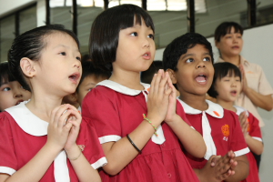 在结束前,法师要大家很肯定的说“能”,并且今后能够完全落实《福智十善法》。幼儿园老师和学生则分别在符园长的带领下宣誓,以肯定将所学习到的《福智十善法》实践在日常生活中,从而塑造健全的品格发展,缔造祥和社会。