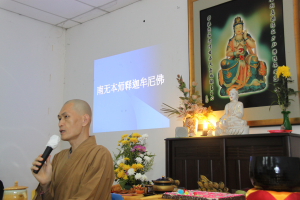 唱诵佛号仪式结束后,真如法师为大众开示佛法。原來中秋节非佛教节日,但因佛教包容性大,且尊重良好文化,于是中国佛教徒在庆祝中秋节时,加入了佛法精神,让这个佳节变得更具意义。月亮象征月光菩薩的兩种美德:光明洁净(象征菩薩的智慧)与光辉清涼(象征菩薩的慈悲)。